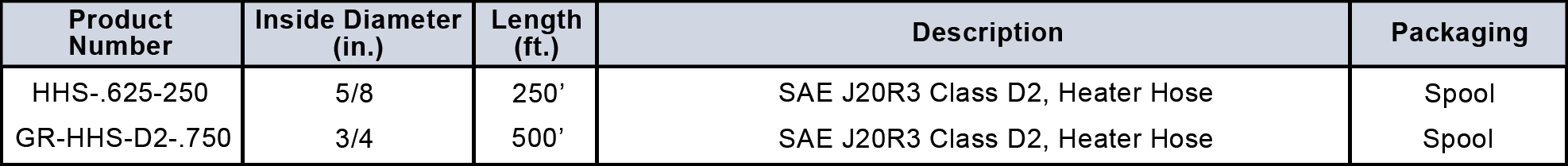 **A variety of SAE J20R3 Spec Heater Hoses are available for various automotive aftermarket requirements per specific OE chassis builders. We currently stock the SAE J20R3 D2 version, which is considered the Standard heater hose for most automotive applications. Also available is the SAE J20R3 D1 Improved Service heater hose. These products resist weathering and provide a long, trouble-free service life.